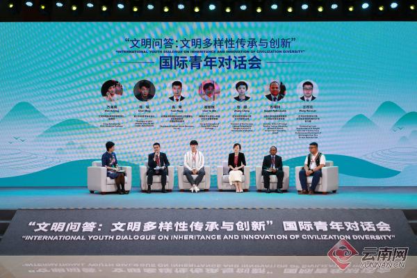 崔瑜珉(左三)、苏噶特(右二)参加“文明问答:文明多样性传承与创新”国际青年对话会文明问答圆桌对话环节