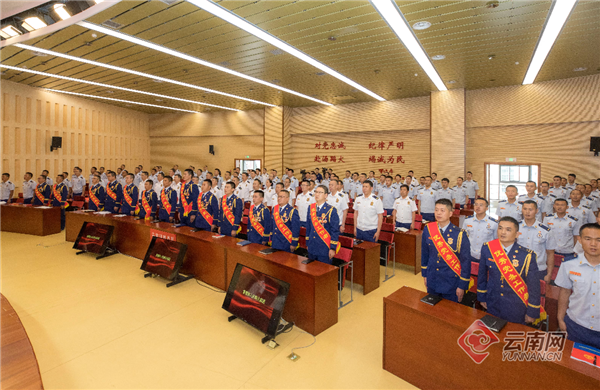 日前,云南省消防救援总队隆重召开全省消防救援队伍“两优一先”表彰大会,隆重庆祝中国共产党成立102周年,表彰先进、鼓舞士气。总队在家党委成员、受到表彰的“两优一先”代表、总队机关和直属支队、昆明支队指战员代表在主会场参加会议,各支队指战员、专职队员、消防文员通过视频会议系统在分会场参加会议。