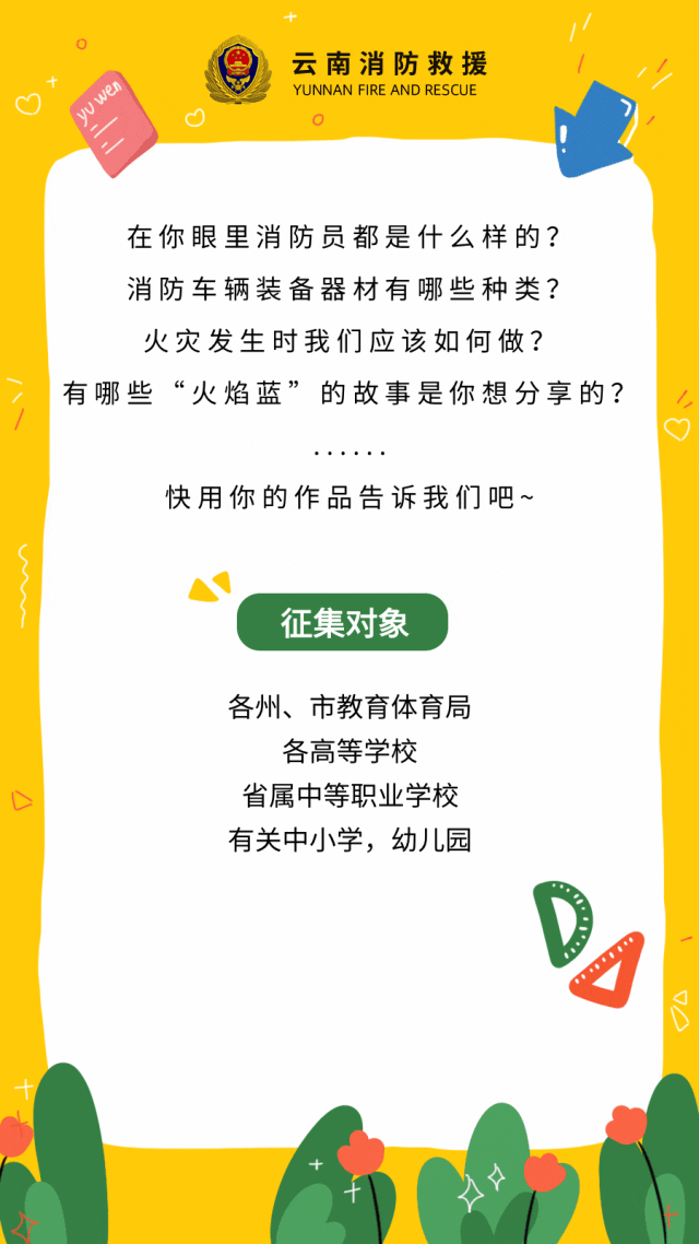 为进一步加强全省消防基础教育工作,提高学校师生消防安全意识,筑牢校园消防安全防线,云南省消防救援总队联合云南省教育厅在全省广泛开展全省第八届消防安全作品征集活动。