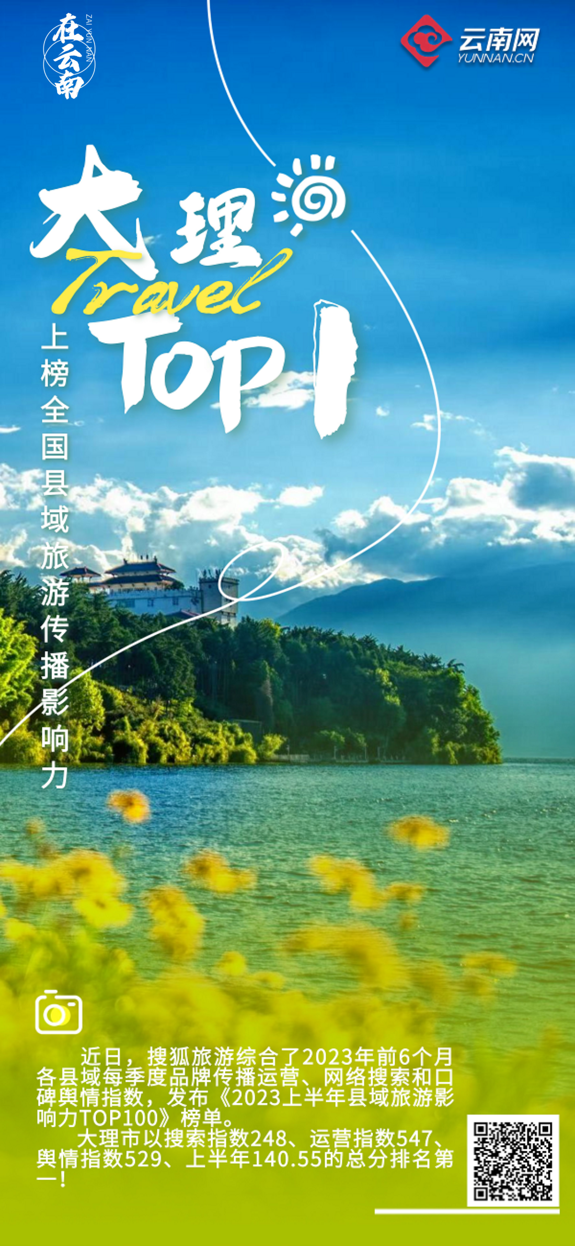 1.上榜全国县域旅游传播影响力Top1! 水碧天青大理焕发新活力