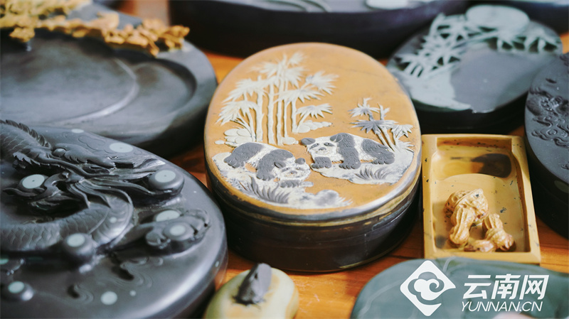 永定老街店铺林立,主要经营着彝绣、苴却砚、羊皮褂、根雕及民间乐器等独具特色的文化旅游产品。触摸绣品之上精美的图案和细密的针脚,这门饱含彝族炽热情感的古老技艺,在时代潮流变迁中焕发出新的生机。苴却砚有着“中国彩砚”之称,惊艳绝奇,为文人墨客所喜爱、也为艺术收藏家及艺术爱好者所青睐,具有极高的鉴赏、收藏价值。