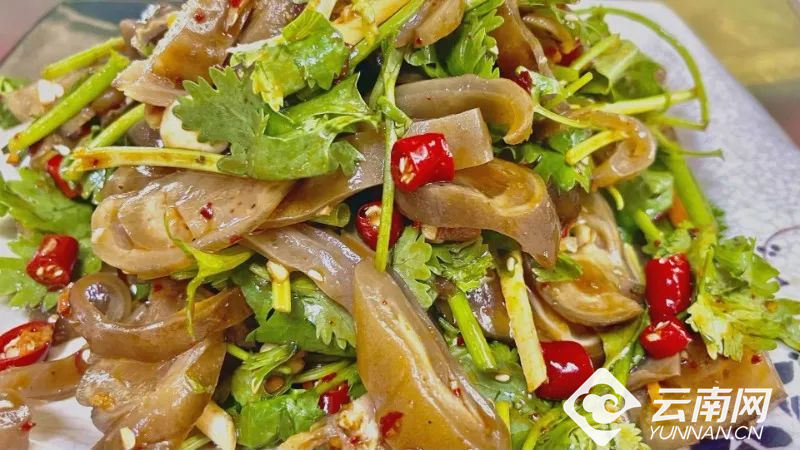还有凉拌驴皮,这是可以吃的“非遗”传统技艺,一端上餐桌,那黄、红、青三色的搭配和晶莹剔透的驴皮片,秀色可餐,让人食欲大增。入口一片,糯滑清爽与麻辣鲜爽融合,层次丰富,香而不腻。