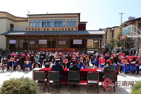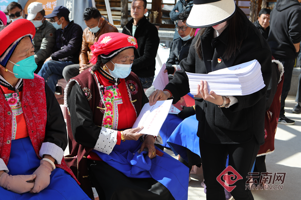 向参训群众发放《独克宗古城消防安全管理办法》资料。迪庆消防 供图
