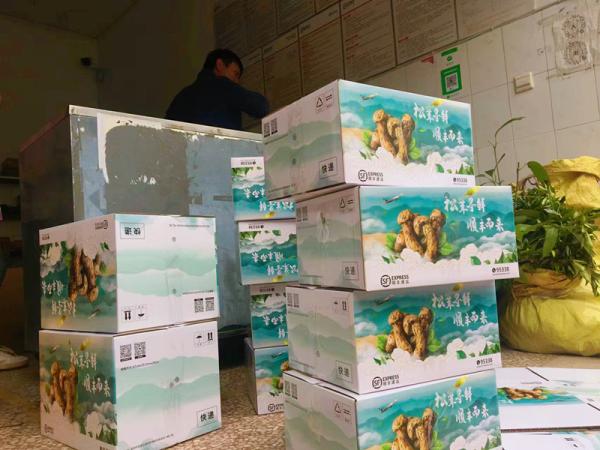 在顺丰快递点,几箱打包好的新鲜松茸即将从大山里出发,运往全国各地、摆上高档餐桌。“这几天松茸还比较少,我们提前开通了松茸专运渠道,确保松茸量产之后,运到餐桌上的味道和品相都是最佳的。”快递员罗旺昌说。