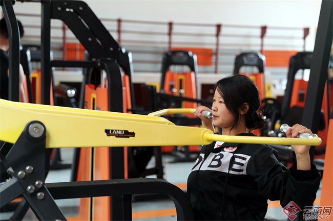 在云南文化艺术职业学院一栋不起眼的教学楼里,一个功能齐全、设备先进的健身房置身其中。每当一天的课程结束,这里都会聚满健身指导和体育保健专业的学生和老师们。在这所艺术类院校里,文体不分家得以完美体现,高校体育也在艺术氛围的滋养下,延伸出更多的形式和内容。