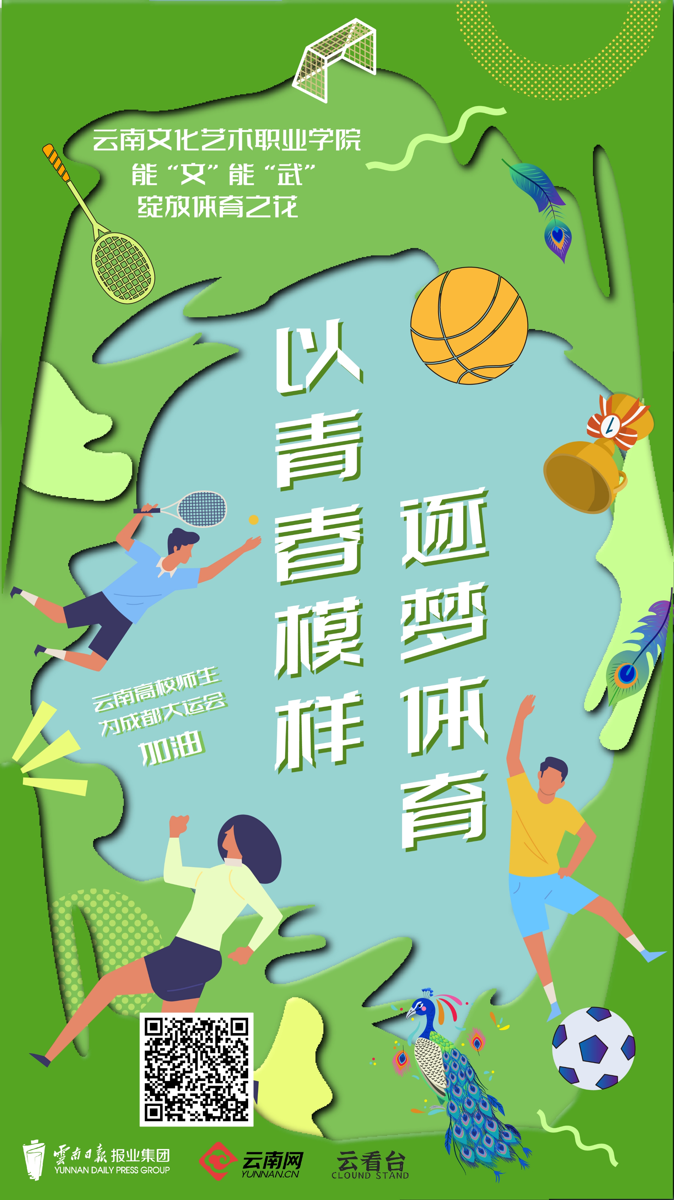 在这个流光溢彩的夏天,青春力量席卷中华大地。进取、活力、创意、多彩……随着越来越多的青年人参与大运会、关注大运会,这场“青春追梦之旅”感召着全国各地的青年学子为大运加油、为梦想喝彩。来自云南高校的学子们也用自己的方式为这场盛大赛事助威,绽放青年人努力奋斗的精彩,迸发出蓬勃向上的青春活力。