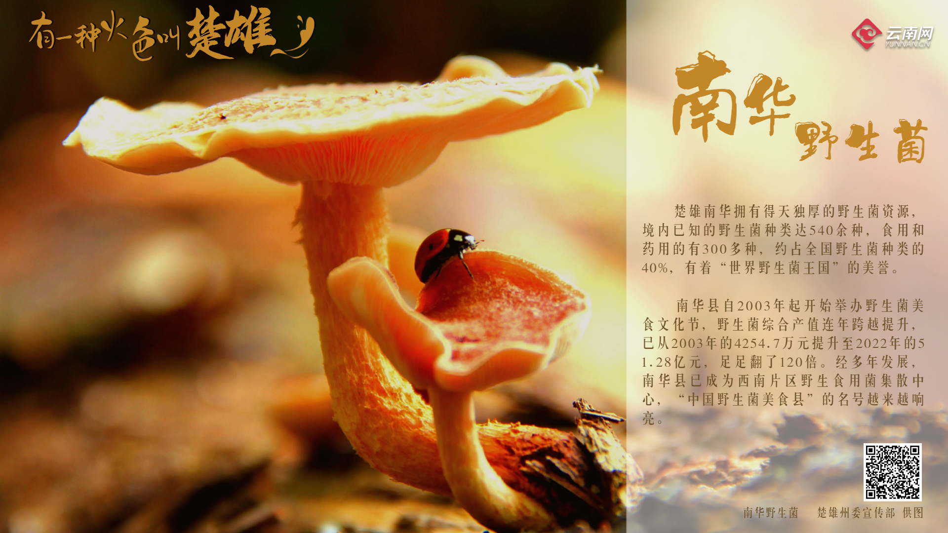 楚雄南华拥有得天独厚的野生菌资源,境内已知的野生菌种类达540余种,食用和药用的有300多种,约占全国野生菌种类的40%,有着“世界野生菌王国”的美誉。