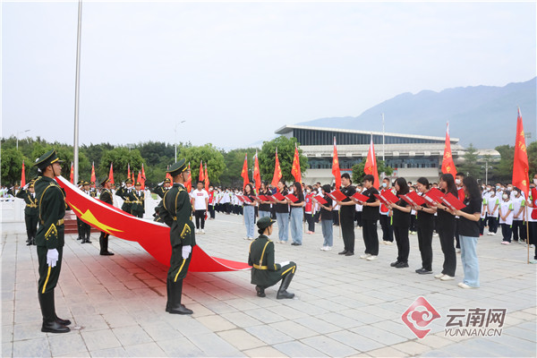 “同学们,你们觉得国旗护卫队的意义是什么?护卫国旗。对!你们要永远记住,你们手上的五星红旗不能落地,要永远高高飘扬在我们镇康一中的旗台上空,同时,你们也代表着爱国主义旗帜,永远都要散发出光芒,引领所有同学……”在云南省临沧市镇康县体育运动中心,来自中国农业大学研支团团长陈子彦带着支教团的老师们正在和镇康一中国旗护卫队的队员们做着最后一次训练。
