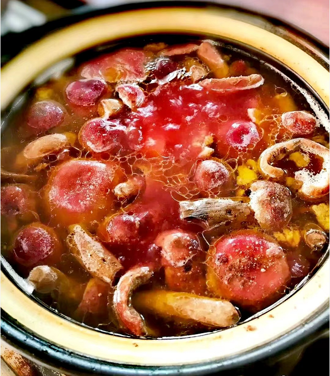 “一乡山水养一乡菌,搭配哀牢山的泉水、会飞树梢的土鸡,每年都有大量食客从祥云、景东、楚雄等地慕名而来,就为了吃一口最正宗的马街红菌炖土鸡。红菌不仅能晒干了炖鸡,还能直接炒着吃,清脆、微甜,是其他野生菌无法替代的。” 马街镇集镇餐馆经营户李建兰高兴地说。