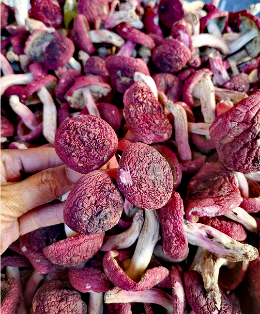 野生红菇俗称大红菌,不同于其他菌种的肆意生长、无拘无束,红菇的孤傲和名贵,在于其对环境严格要求,要温热,也要潮湿,要天赐,也要机遇。野生的红菇并非随性之“菌”任意生长,而是认准了某一方宝地,往后每年都会在此地出菌。