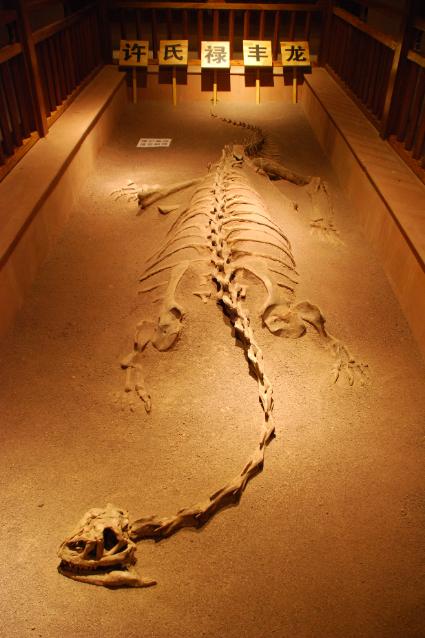 中国最早发掘的恐龙化石——许氏禄丰龙化石。李建华 摄