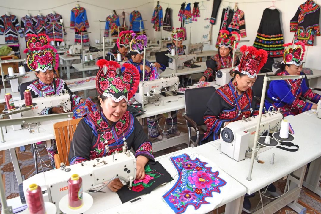 “一盘棋”谋划,成立宣传部门牵头抓总的彝绣产业工作专班,出台加快彝绣产业高质量发展的系列政策措施;工业化推进,组建楚雄州文化发展公司、彝绣产业联合会,建成7个彝绣产业园(街区);全链式发展,构建“州文化发展公司+产业联盟+骨干企业+协会(合作社)+绣娘”的产业发展模式,形成了“区域有园区、县县有企业、乡乡有车间、村村有绣坊”的发展格局。