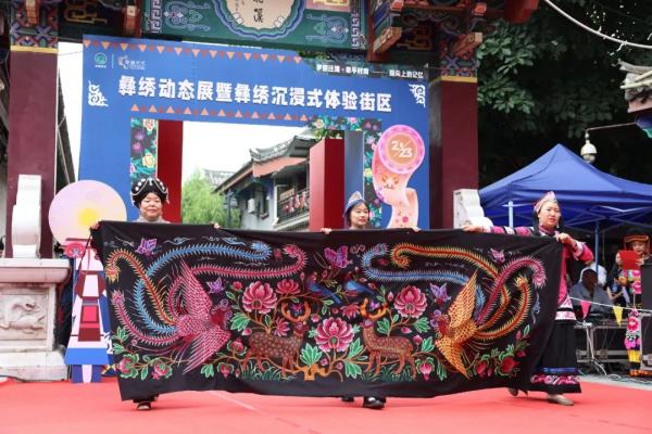 熊熊火把点燃激情,千年彝绣牵手时尚。8月10日上午,中国·楚雄2023年彝族火把节“梦回千年·牵手时尚——指尖上的记忆”彝绣动态展暨彝绣沉浸式体验街区在楚雄市彝人古镇茶花溪畔启动,集中展示楚雄彝绣绚丽多彩的文化魅力。