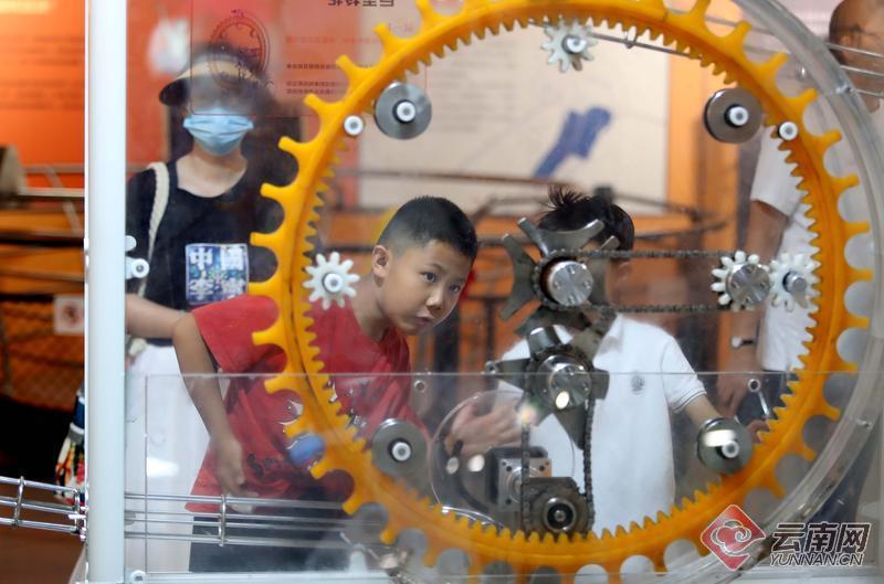 作为全国科普教育基地,云南省科技馆常设展厅以“探索科学·认识世界”为主题设置了“启迪智慧的数” “传递声光的波”“改变世界的电” “影响运动的力”四个主题展区,包括数学、光学、电学、力学等学科的科普展品近百件。今年暑假,云南省科技馆还组织开展了“未来科学节”公益科普活动,通过引领科技创新潮流,展示科学魅力,为广大青少年提供丰富多彩的科学实践活动。科技馆开馆日实行分时段预约参观,四个时段的预约参观几乎场场满员,成为孩子们快乐度暑假的科普乐园。