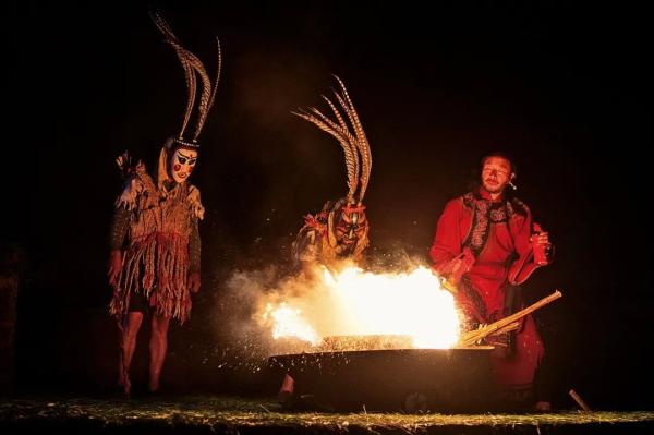 人们高举火把载歌载舞,尽情狂欢