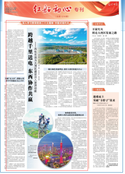 《光明日报》5版“红船初心”专刊推出报道《跨越千里送电 东西协作共赢》