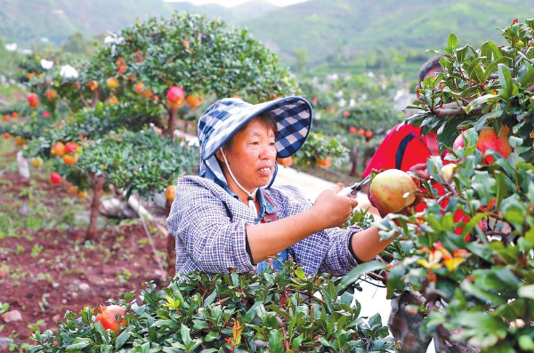 近年来,会泽县不断完善农业基础设施,开展技能培训,培育经营主体,将盐水石榴种植面积扩大到5.5万亩,年产石榴4.6万吨,年产值6亿元,为当地群众增收提供了有力的产业支撑。