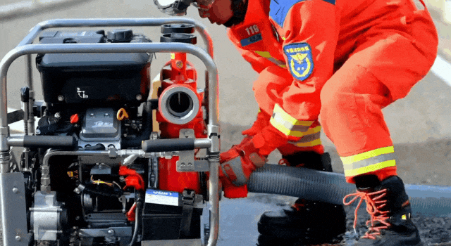 螺丝刀和扳手持续扭动、电动钻头不停旋转,一个个螺丝被快速锁紧,一只手从工具箱选中工具,一只手拿零件操作……消防装备维护员的比赛,是精细活的比拼,比的是娴熟的技术,更比良好的心理素质,是“快、准、稳”的综合较量。随着“开始”口令的下达,参赛选手迅速从工具箱挑选适合的工具,并对手抬机动泵进行拆卸,更换引水泵刮片和传送皮带,连接吸水管、水带,启动手抬机动泵引水,通过控制油门的大小调节射流射水打靶。