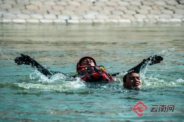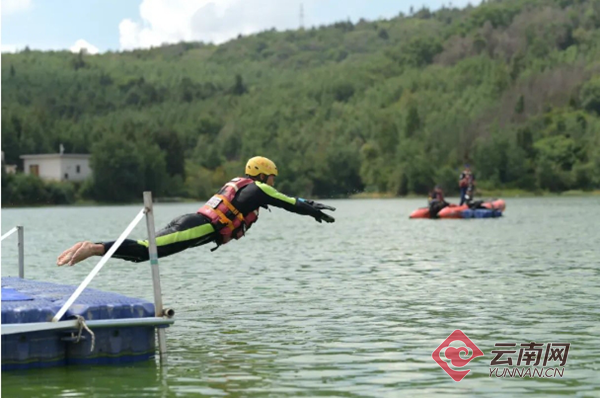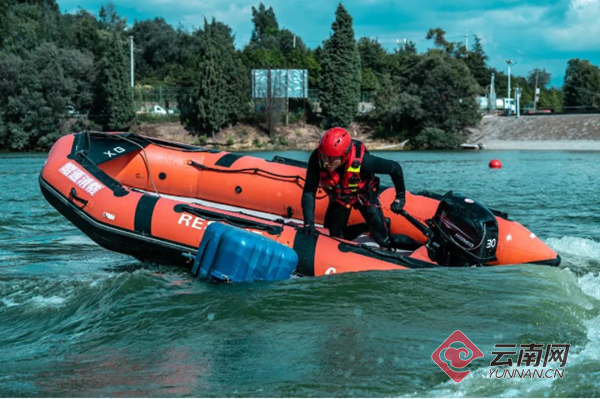 在水域救援科目竞赛现场,设置了入水游泳、橡皮艇驾驶、水中遇险人员救生、岸上急救等实战环节比拼。