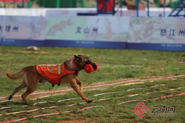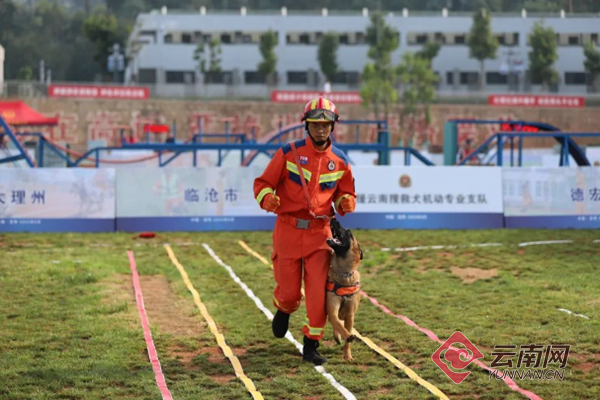 在搜救犬训导员项目竞赛中,参赛选手与他们的搜救犬配合默契,并肩作战,顺利完成指挥服从、攀登障碍、箱体搜救3个模块的竞赛。