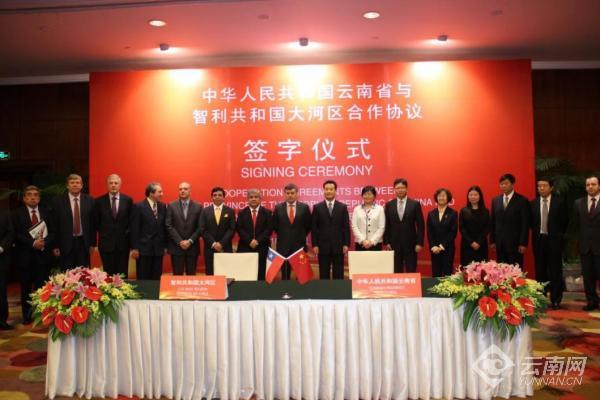 2012年4月1日,云南省与智利大河区正式缔结友好省区关系,实现了云南省与南美洲国家在省级友好城市关系上零的突破。结好以来,双方在高层往来、经贸、文化、林业等领域开展了丰富多彩的务实交流合作。