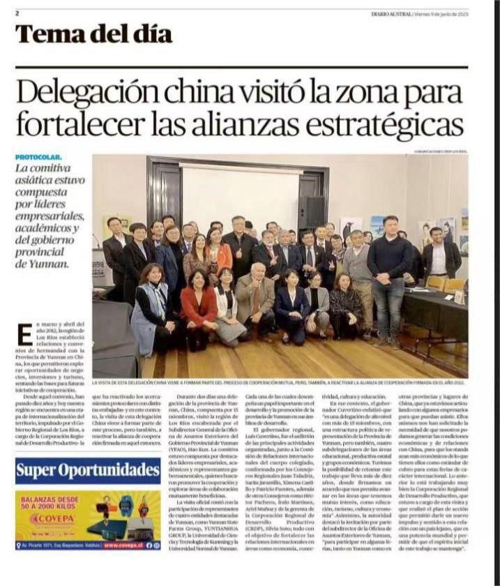 智利当地媒体对云南省外事教育经贸代表团活动进行了跟踪报道。