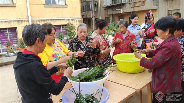 麒麟区太和街道瑞和新城小区党支部端午节组织业主包粽子