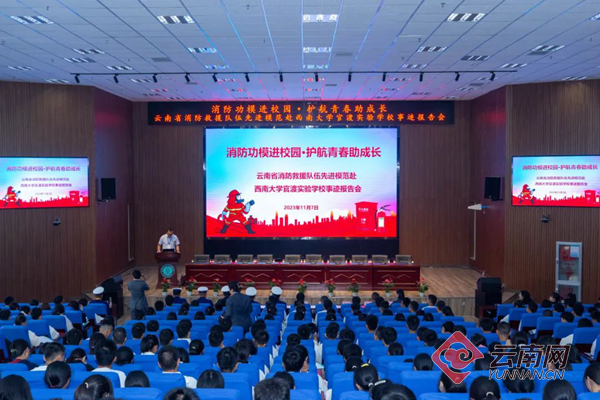 11月7日上午,云南省消防救援总队同官渡区教体局在西南大学官渡实验学校举办“消防功模进校园·护航青春助成长”先进模范事迹报告会。昆明市官渡区教育体育局主要领导,云南省消防救援总队先进模范报告团成员,学校500余名师生参与活动。
