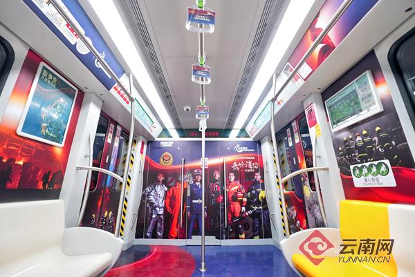 “火焰蓝号”专列集知识性、趣味性、观赏性、教育性为一体,不仅是云南首趟消防主题地铁,也是最“接地气”的全景消防宣传阵地。
