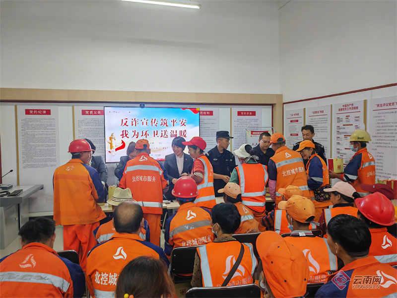 为进一步增强全民预防电信诈骗的防范意识,共建和谐文明社区,11月9日,两新组织完美云南分公司党支部联合昆明市金碧街道气象路社区开展了“反诈宣传筑平安 我为环卫送温暖”活动,向辖区42名环卫工人宣传反电诈知识,送上洗护用品等爱心物资。
