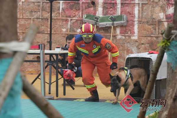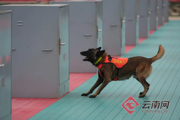 经过长期共同的生活、训练,建立感情、确立秩序,人与犬并肩携手,亲密默契。“搜!”随着训导员一声令下,搜救犬迅速在多个箱体中逐个搜索,找到随机隐藏的“被困人员”,持续吠叫示警。
