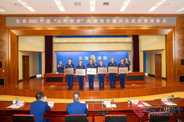 11月26日,全省2023年度“云岭利剑”执勤岗位练兵比武竞赛圆满落下帷幕。云南省消防救援总队主要领导出席闭幕式并讲话,总队在家党委成员、全省各支队主官、灭火救援指挥部部长,比武获奖个人和单位代表,以及总队机关各处室负责人在主会场参加闭幕式,各支队、大队、消防站值班在岗指战员通过视频同步收看。