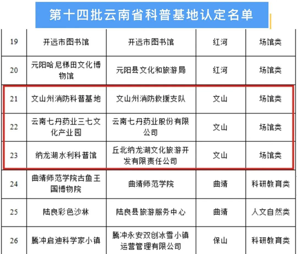 这是文山州消防科普教育基地被认定为省级科普教育基地以后接待的第一批参观人员。11月27日,云南省科学技术厅官方网站发布通知,经云南省人民政府审批同意认定37家单位为第十四批云南省科普教育基地。文山州消防科普教育基地成功入选。