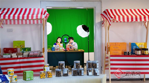 走进云南省新农人总部基地,货架上摆满了琳琅满目的云南特色农产品。直播间里,一位位主播正拿着商品进行直播介绍。