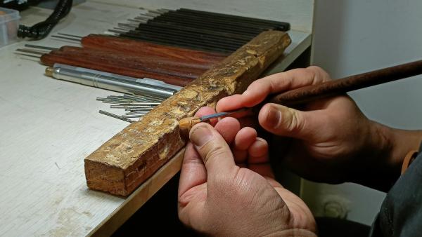 市民张健表示:“我的师傅教了我一些基本的动作,如何使用雕刻刀,如何走线条。慢慢地自己掌握了一些东西后,就有了自己的想法,我就从视频,还有其他老师的一些作品里学习,慢慢有了自己的风格。”