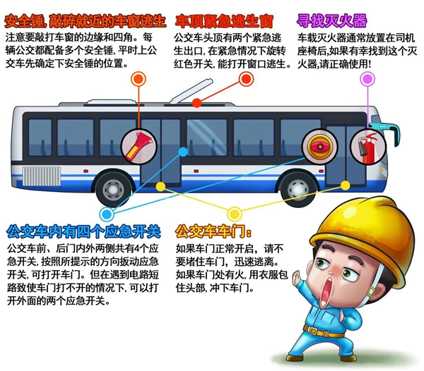 各运输企业、车主要加强车辆油路、电路检修,加强司乘人员消防培训和宣传教育,提早对客运站点开展消防安全检查,运输车辆要配齐安全锤、灭火器;广大乘客严禁携带易燃易爆危险品进站上车,遇有车辆发生火灾等意外,要听从指挥,有序疏散,防止拥挤踩踏。