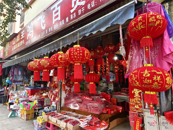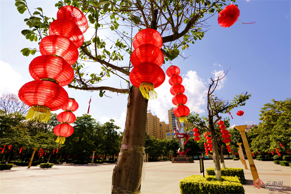 春节临近,临沧市云县的大街小巷张灯结彩,一派浓浓的春节喜庆氛围。