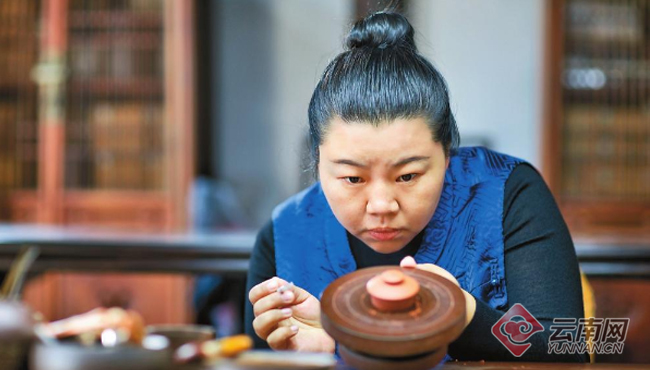 滇南琼玉,建水紫陶,以书画镂刻、彩泥镶填为主要手段,集书画、金石、镌刻、镶嵌、等装饰艺术于一身。美好,要活起来、传下去。每年全国两会期间,都会有代表委员为之奔走呼喊。全国政协委员、国家级非遗项目建水紫陶烧制技艺省级代表性传承人田静,就是其中之一。