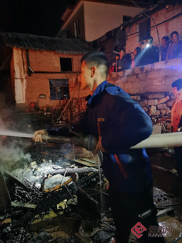 2023年12月1日23时左右,宣威市得禄乡大营村一居民房屋突发火灾,情况紧急。由于大营村较为偏僻,附近没有消防救援站。休假在家的徐育听到派出所警车发出的消防警报,并得知在得禄乡小营砂石场工作的父亲要驾驶洒水车前往供水后,他带领父亲赶赴火场。