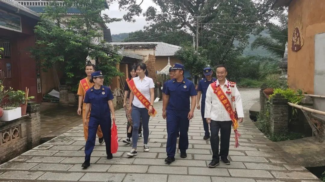 遮放镇傣族、景颇族聚居,群众消防安全意识参差不齐。专职队专门邀请非物质文化遗产传承人拍摄民族类消防公益宣传视频,突出民族特色文化,将消防知识与民族文化相融合,通过微信消防宣传专栏每周在村组微信群推送。队员们自制宣传画册,走村入户,“一对一”、“面对面”对农村留守老人、儿童、妇女和孤寡、残障等不同群体开展精准化消防安全宣传培训,组织宣讲员“敲门入户”进行志愿宣传服务,用群众听得懂、感兴趣、最贴心的方式,将消防安全知识送到田间地头和老百姓心头。