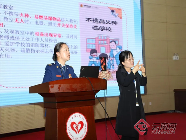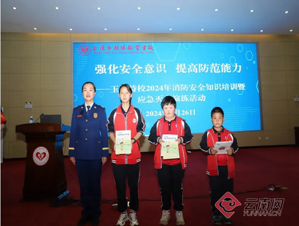 近日,玉溪市消防救援支队“蓝朋友”走进市特殊教育学校,为100余名视听障全体学生及任课老师上了一堂特殊的消防安全课。