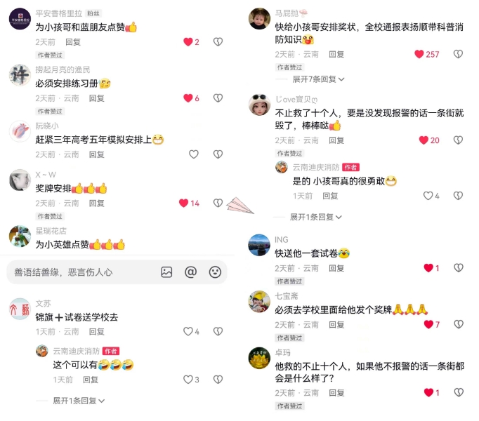 “不止救了十个人,要是没报警的话一条街就毁了,棒棒哒”