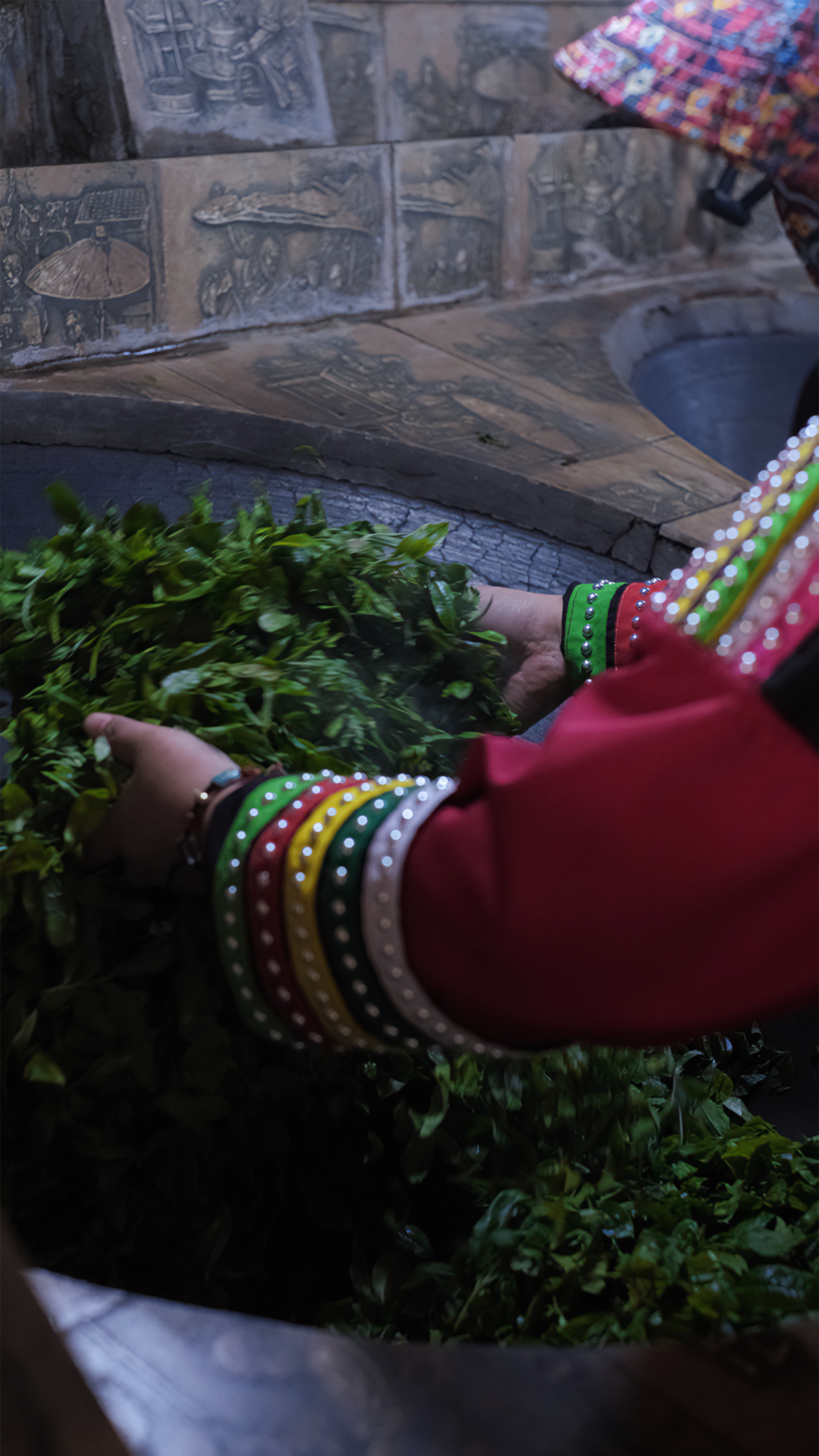 在临沧双江勐库镇,茶农徒手杀青普洱茶 王毅 摄