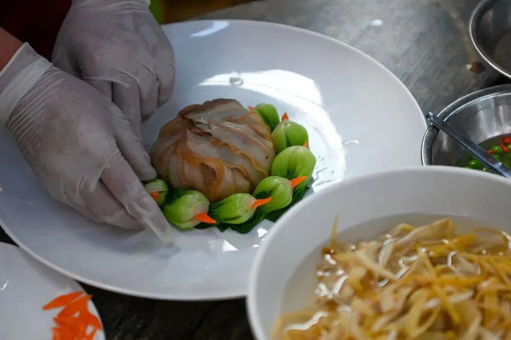 昆明一家餐厅的厨师在制作以芭蕉花为原料的菜肴 新华社记者曹梦瑶 摄
