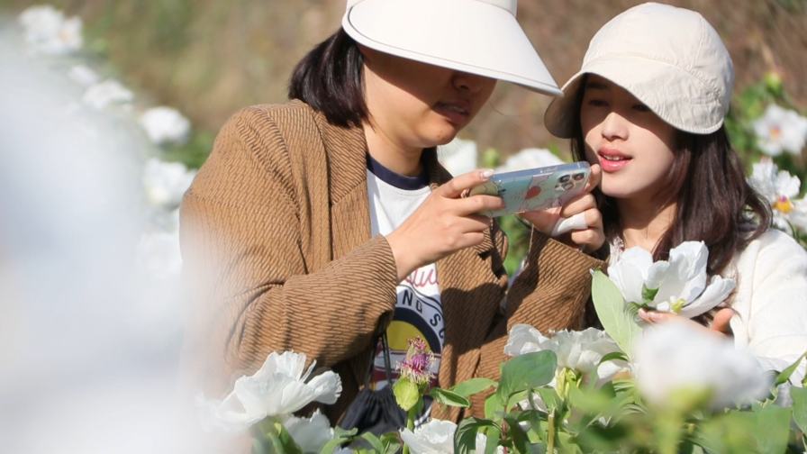 保山施甸万兴春润茶文旅农庄游客在给牡丹花拍照 保山市委宣传部 供图