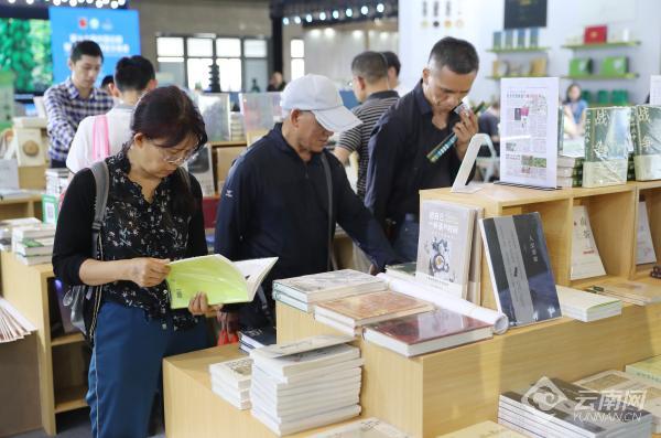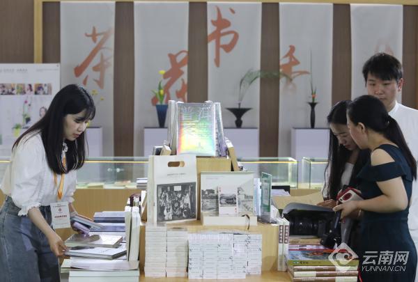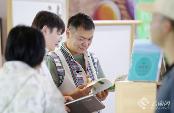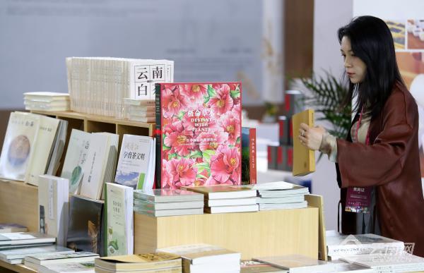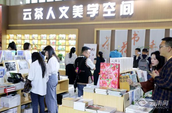 4月21日,在第十六届中国云南普洱茶国际博览交易会上,云茶人文美学空间吸引众多茶友和参观者前来读茶史、选茶书,以书为媒开展茶文化交流。