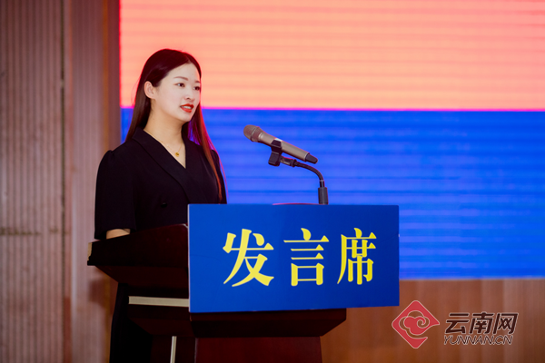 楚雄州雁塔消防救援站三级消防长杨涛的妻子孙瑜代表家属发言,看到爱人晋升高级消防员,发自内心的骄傲和自豪,感到所有的付出都是值得的,衷心感谢组织对指战员家庭的关爱,祝愿所有的消防员每次执行任务都平安归来,作为家属将永远是消防员最坚强的后盾和最温暖的港湾。