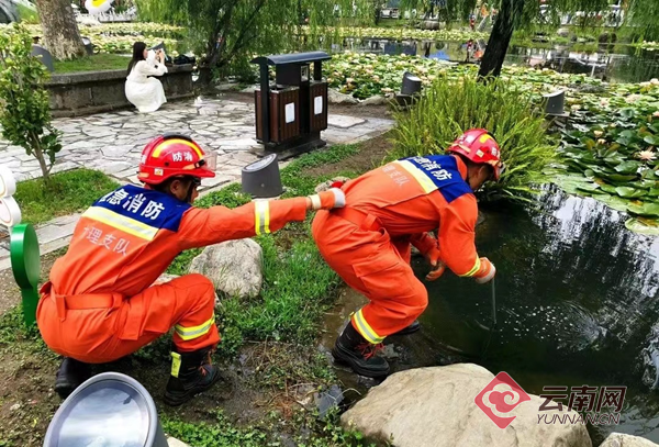 “谢谢你们帮我把手机捞上来,带着孩子身处异地,手机太关键了。”2023年8月,一名游客给喜洲消防救援站送来感谢信和锦旗,该游客在喜洲旅游期间,不小心将手机掉进荷花塘中,自行打捞无果后到消防站寻求帮助,消防员巧妙使用捕蛇钳将手机捞起。