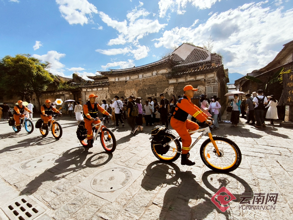 为破解喜洲古镇内道路狭窄、交通不便的难题,喜洲消防救援站组建了“火焰蓝”自行车巡逻队,以骑行的方式发挥最大应急处置效能。巡逻队以5辆全地形山地自行车为主要交通工具,配备“百用携行包”,携行包内“量身定做”了简易式水基型灭火器、灭火毯、烟感式泡沫型自动灭火装置等简易灭火器材,能够“即取即用”。基于古镇内遍布核心区域的79个室外消火栓,携行包还配备了消防水带水枪、消防栓扳手、消防腰斧等器材装备,能因地制宜就近取用室外消火栓展开灭火救援战斗。