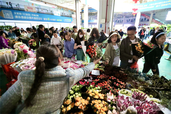 “准备乘高铁回去,一会还要给妈妈再带上一份斗南的浪漫,祝她节日快乐。”从四川成都来旅游的谢云峰和朋友在呈贡斗南花卉市场选购鲜花。他说,斗南花市是他们到云南旅游的最后一站,当地人热情好客,销售的鲜花品质高,品种也更多。